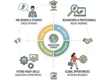 We offer tailored support to students, researchers, and young professionals in agricultural sciences: guiding them toward global education, international career opportunities, and expert career mentorship.